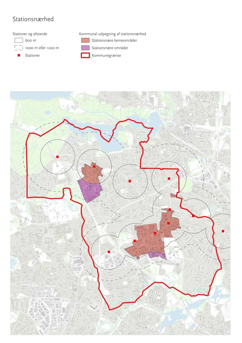 I Gladsaxe Kommune har Byrådet vedtaget, at intensiv byudvikling primært kan ske i tilknytning til Bagsværd Station og Buddinge Station. Bagsværd Station er beliggende i en byfinger, og det stationsnære område ligger dermed i en afstand af op til 1.200 meter fra stationen, mens Buddinge Station er beliggende i håndfladen, hvor det stationsnære område ligger i en afstand af op til 1.000 meter fra stationerne.