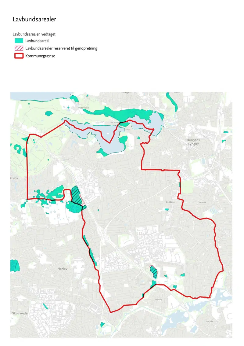 Lavbundsarealer er lavtliggende områder, tidligere enge, moser eller søer, som er kunstigt afvandet eller drænet. Der er udpeget lavbundsarealer ved Bagsværd Sø, Smør- og Fedtmosen, Gyngemosen og Høje Gladsaxe.